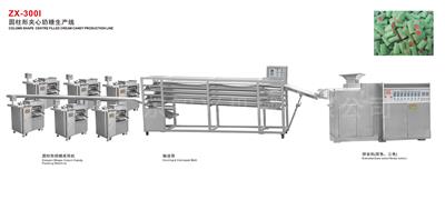 可根據(jù)客戶的要求生產(chǎn)出各種形狀及規(guī)格的產(chǎn)品,如口香糖、瑞士糖的片形、長(zhǎng)方形、圓形的夾漿、夾色、夾心等。