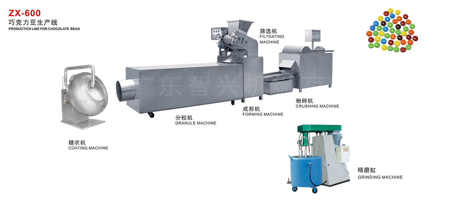 該生產(chǎn)線適用于各種不同形狀(如圓片、豆形、橄欖形等)的高質(zhì)量巧克力豆的生產(chǎn)。
